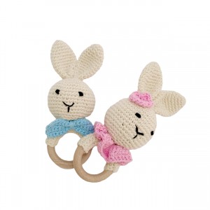 Jucaria de dentitie crosetata, cu inel de lemn, va incanta bebelusii inca de la prima atingere. Materialele naturale, placute la atingere, fac jucaria sigura pentru micutii nostri. Este formata din doua texturi diferite, bumbac mercerizat umplut cu...